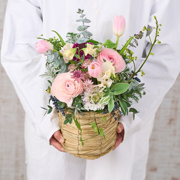 春の代表的なお花が勢ぞろい!チューリップ・ラナンキュラス・スイートピーを使った春満喫アレンジメントです。ピンクの濃淡と春のグリーンでおつくりした優しい大人ピンク系は、幅広い年齢に喜ばれます。早春のギフトにもおすすめです。